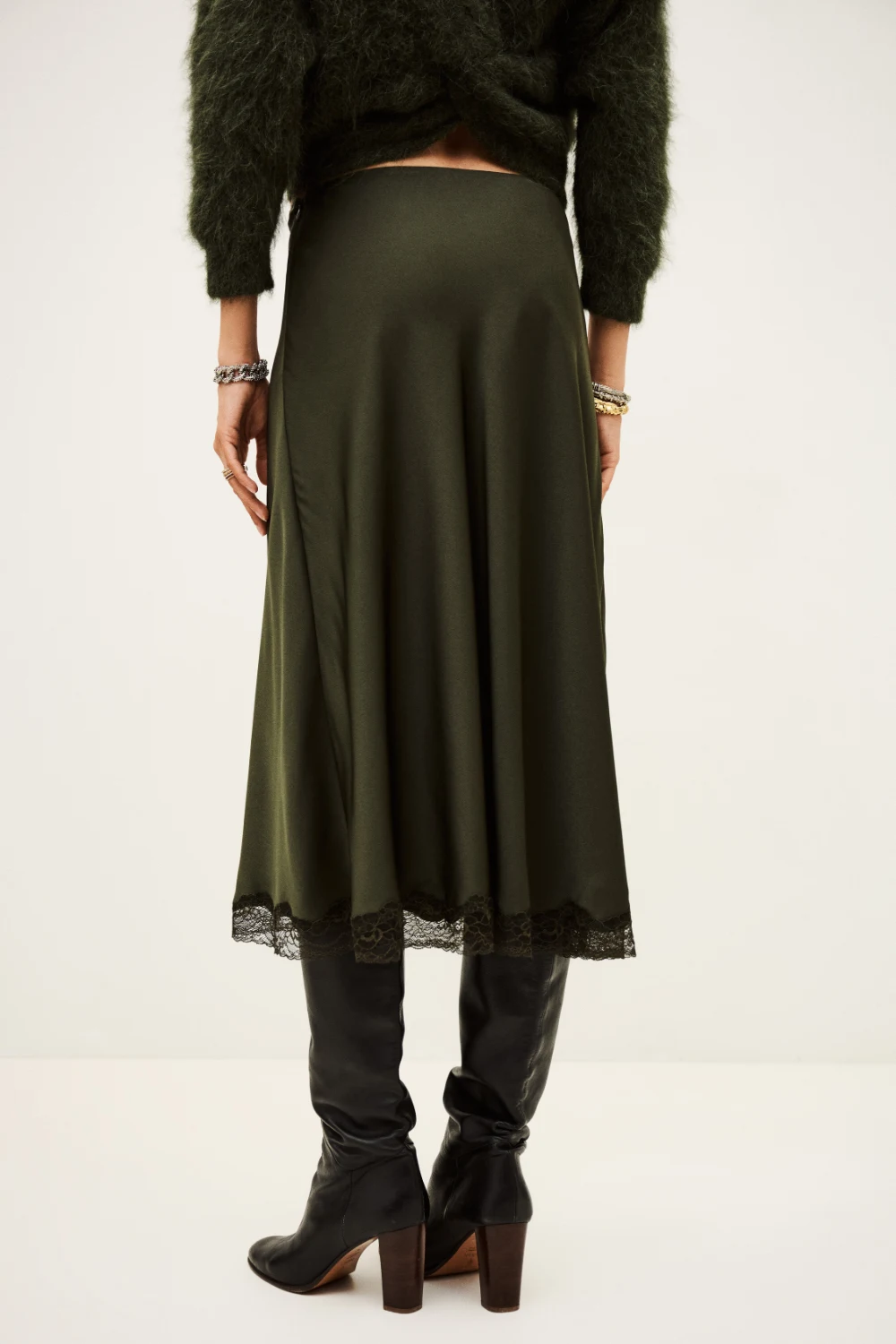 Tone-on-tone lace trim detail on hem