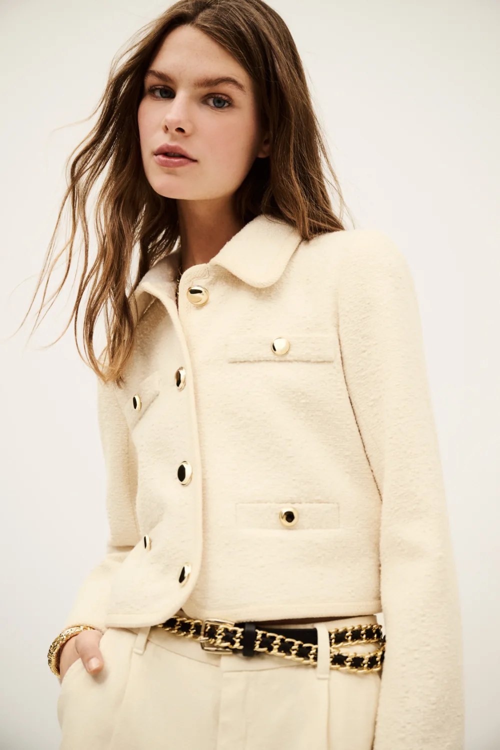 ז'קט עם שרוולים ארוכים בגזרת בלייזר מוקפדת, באורך שמחמיא לקו המותן
