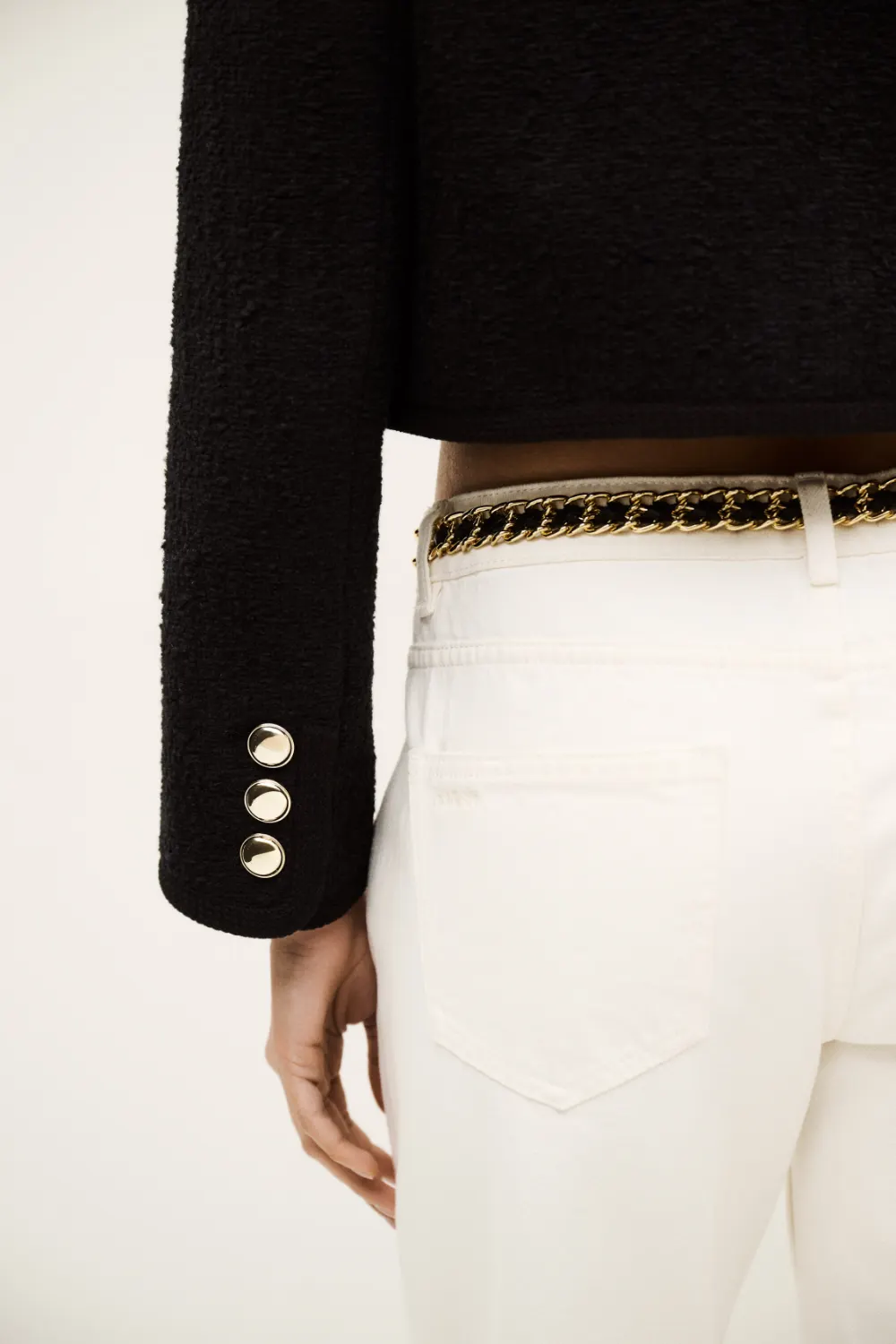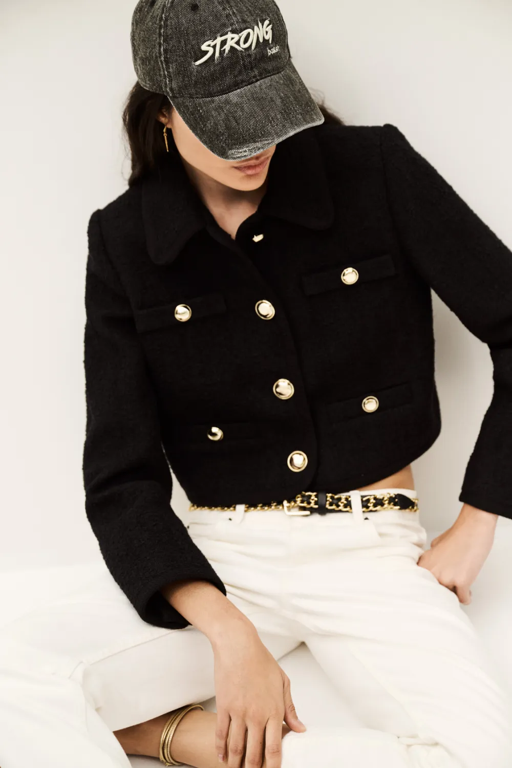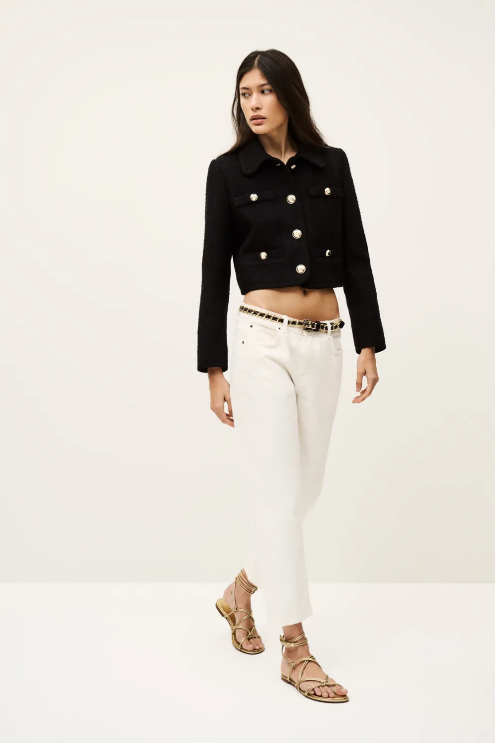 ז'קט עם שרוולים ארוכים בגזרת בלייזר מוקפדת, באורך שמחמיא לקו המותן