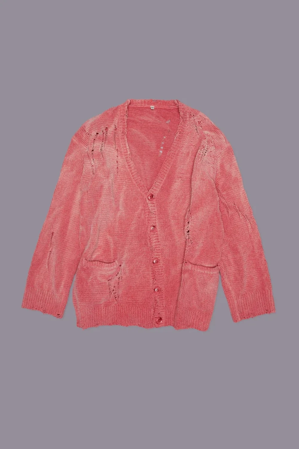 קרדיגן כותנה בגזרה משוחררת עם גימורים פרומים.
