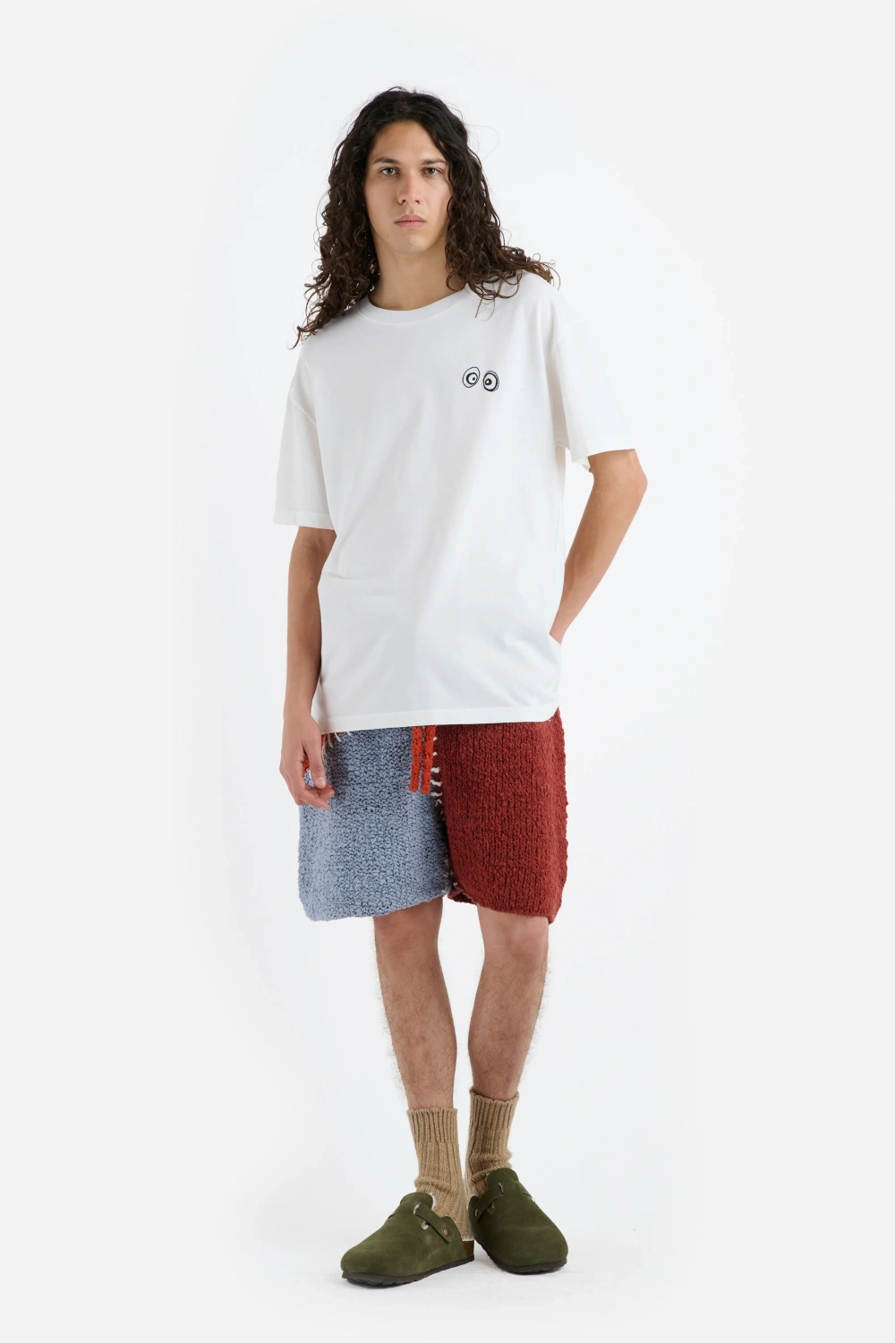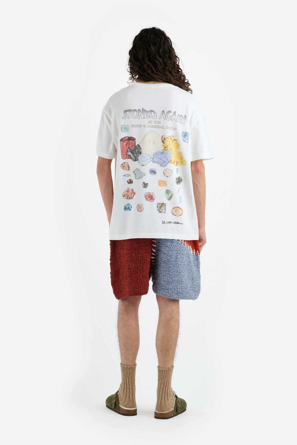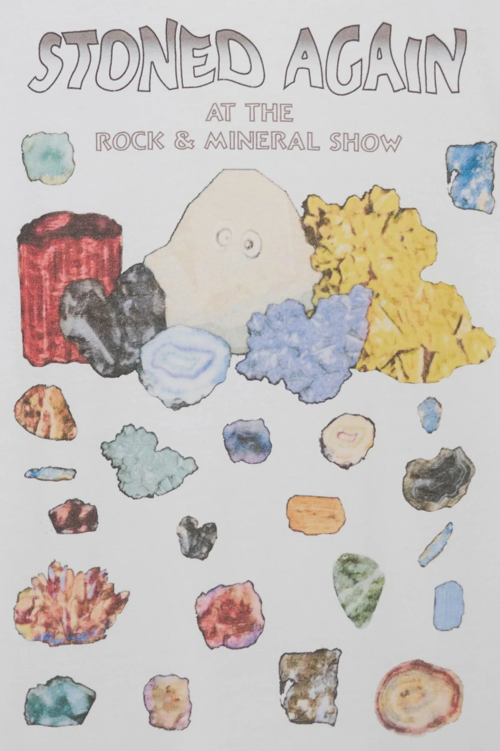 טי שירט רכה מכותנה וקשמיר, עם הדפס מינרלים בגב ואיור עיניים קטן בחזית בצד שמאל