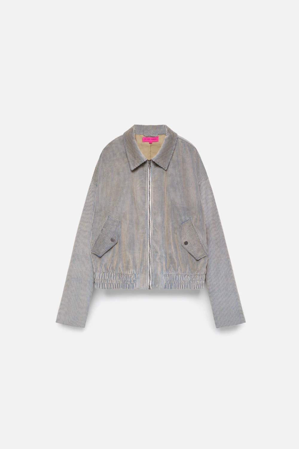 ז’קט כותנה בגזרה מחויטת, עם צווארון מובנה, רוכסן דו-כיווני וכיסים בצדדים
